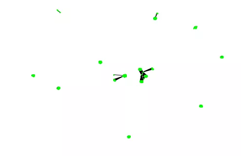 import itertoolsimport networkx as nximport matplotlib.pyplot as pltf = open('data/facebook/1684.circles', 'r')circles = [line.split() for line in f]f.close()network = []for circ in circles: cleaned = [int(val) for val in circ[1:]] network.append(cleaned)G = nx.Graph()for v in network: G.add_nodes_from(v)edges = [itertools.combinations(net,2) for net in network]for edge_group in edges: G.add_edges_from(edge_group)options = { 'node_color' : 'lime', 'node_size' : 3, 'width' : 1, 'with_labels' : False,}nx.draw(G, **options)