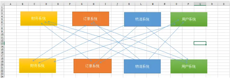 多个子系统直接相互交互,相互调用非常凌乱,这时候就要用到SOA架构,帮助我们把服务之间调用的关系治理起来,提供统一的标准。将服务治理成下图所示。