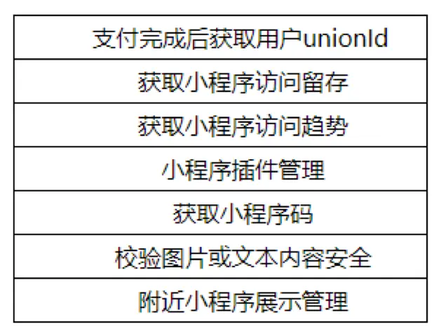 其他的云调用开放能力如获取留存,获取小程序码,校验图片或文本内安全这些能力也都很有用,想想以前检查用户图片是否非法的流程,用户需要先将文件上传到服务端,服务端再调微信校验接口检查,现在可以直接调云函数就可以完成检查。其他的云调用能力如下: