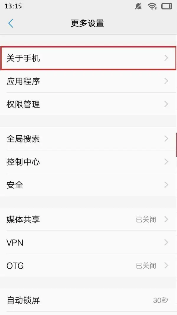 接下来找到“关于手机”这一行,点击进入“关于手机”界面。