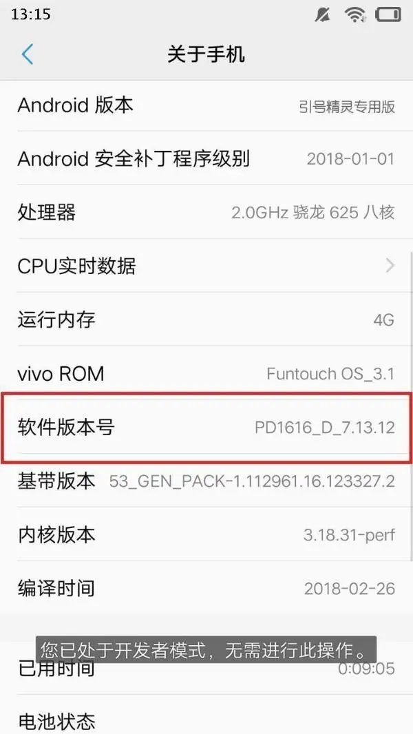 第四步进入到关于手机界面之后,连续点击“软件版本号”一栏,直到看出弹出您已进入开发者模式的提示。