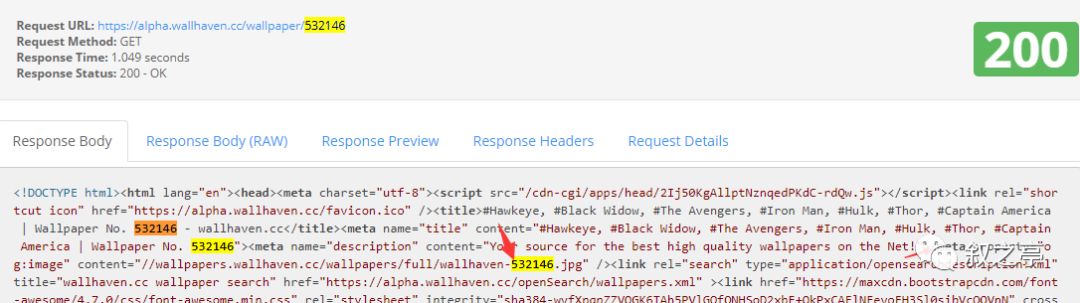 我们怎么通过第一个直接构造出第二个链接?将子域名alpha换成wallpapers,然后将637560换成full/wallhaven-637560.jpg就可以了啊