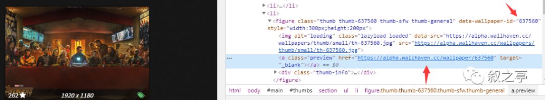 但是有些链接是6位数,也有些是5位数的。我们该怎么处理?直接用Python切片肯定不行的了。还是细心,有些朋友可能以及发现我已经在上的那张图片哪里用来个箭头指向了一个叫data-wallpaper-id的属性