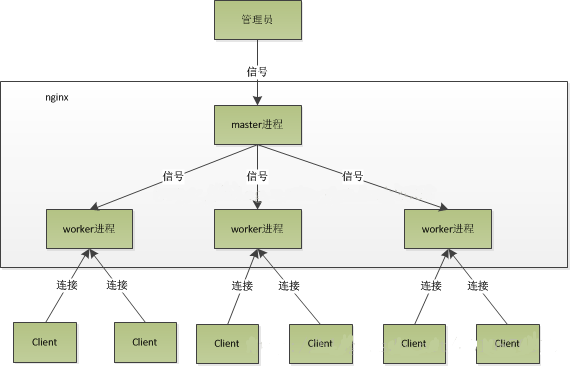 3、Nginx有两类进程,一类称为Master进程(相当于管理进程),另一类称为Worker进程(实际工作进程)。启动方式有两种: