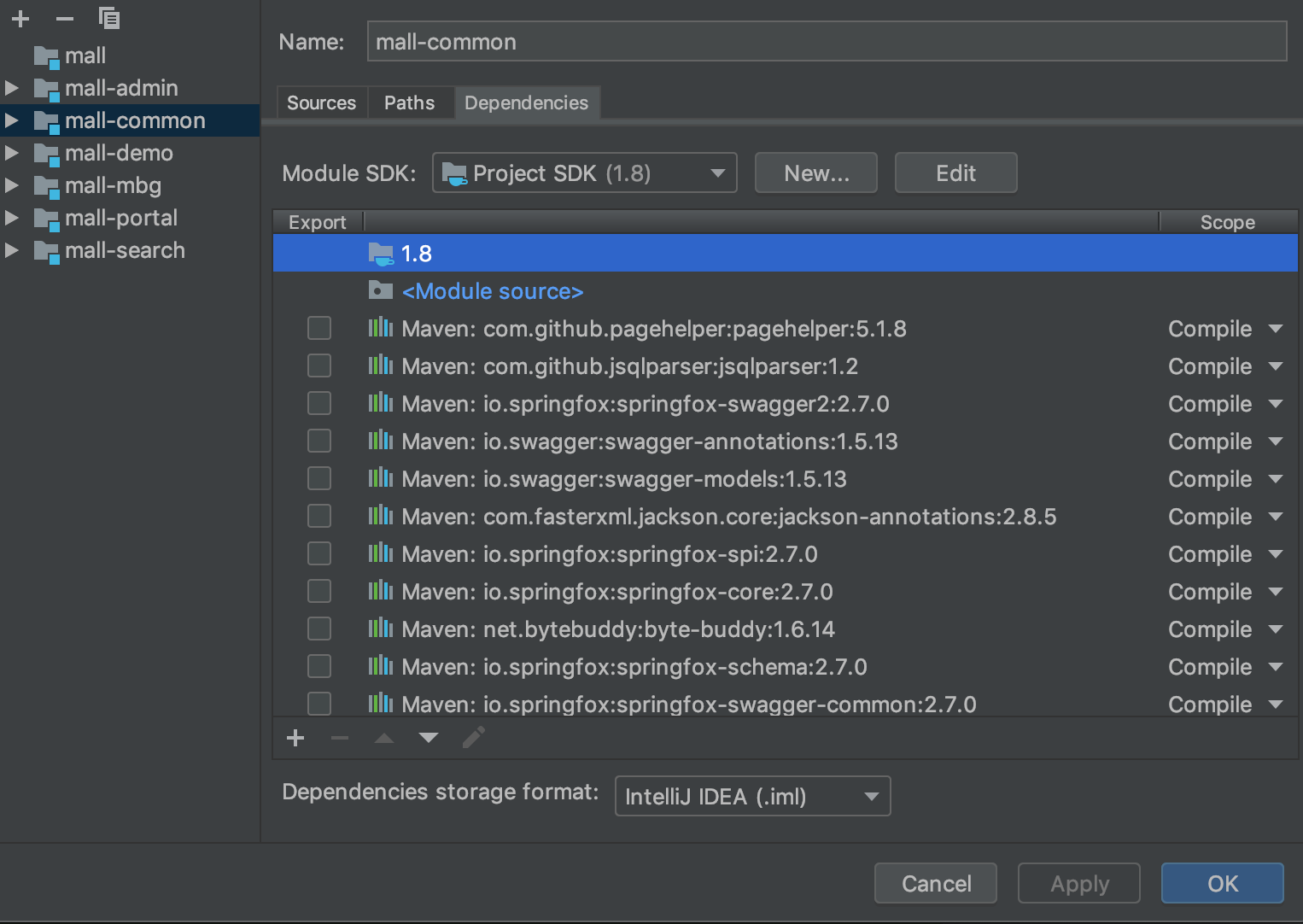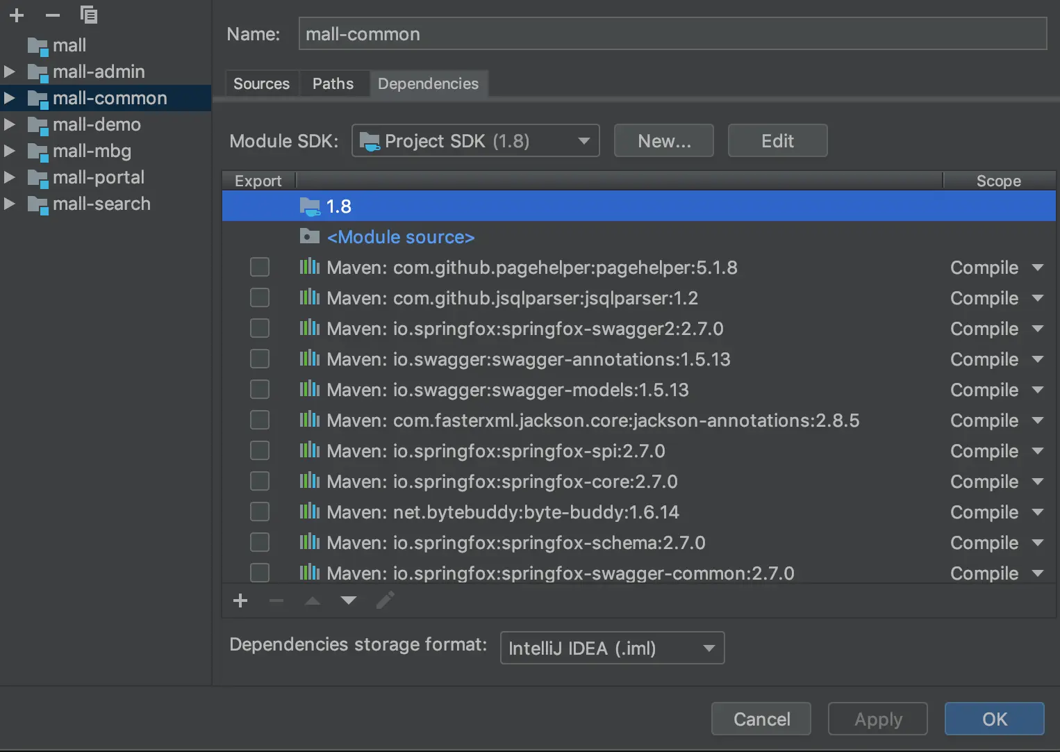 - SDKs (项目使用的SDK信息,也可以添加其他的SDK)
