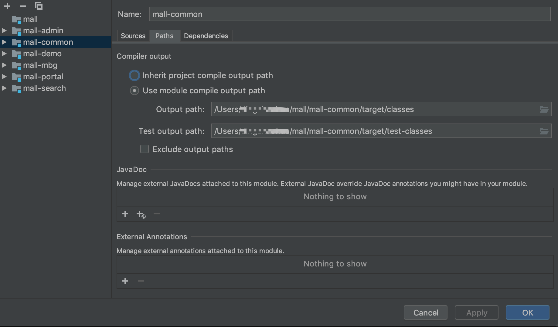 explode 在这里你可以理解为展开,不压缩的意思。也就是 war、jar 等产出物没压缩前的目录结构。建议在开发的时候使用这种模式,便于修改了文件的效果立刻显现出来。默认情况下,IDEA 的 Modules 和 Artifacts 的 output 目录 已经设置好了,不需要更改,