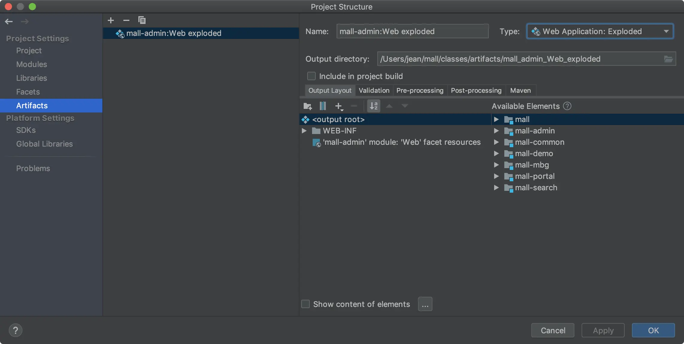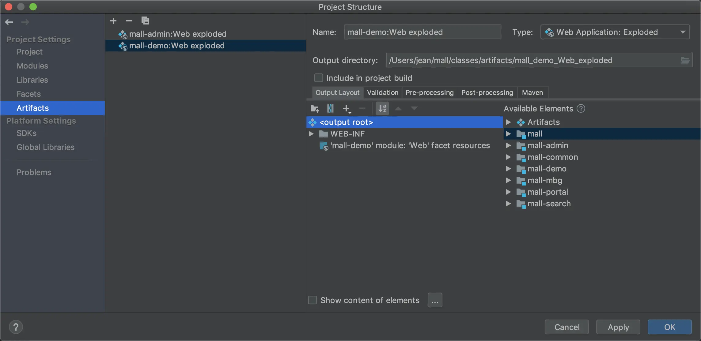 - Aftifacts (打包相关设置:打包名称、输出路径等)