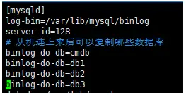 log-bin:同步的日志路径及文件名,一定注意这个目录要是mysql有权限写入的(我这里是偷懒了,直接放在了下面那个datadir下面);