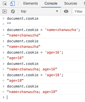 我们更改cookie的话,如果有相同值,会覆盖,如果没有,会创建新的