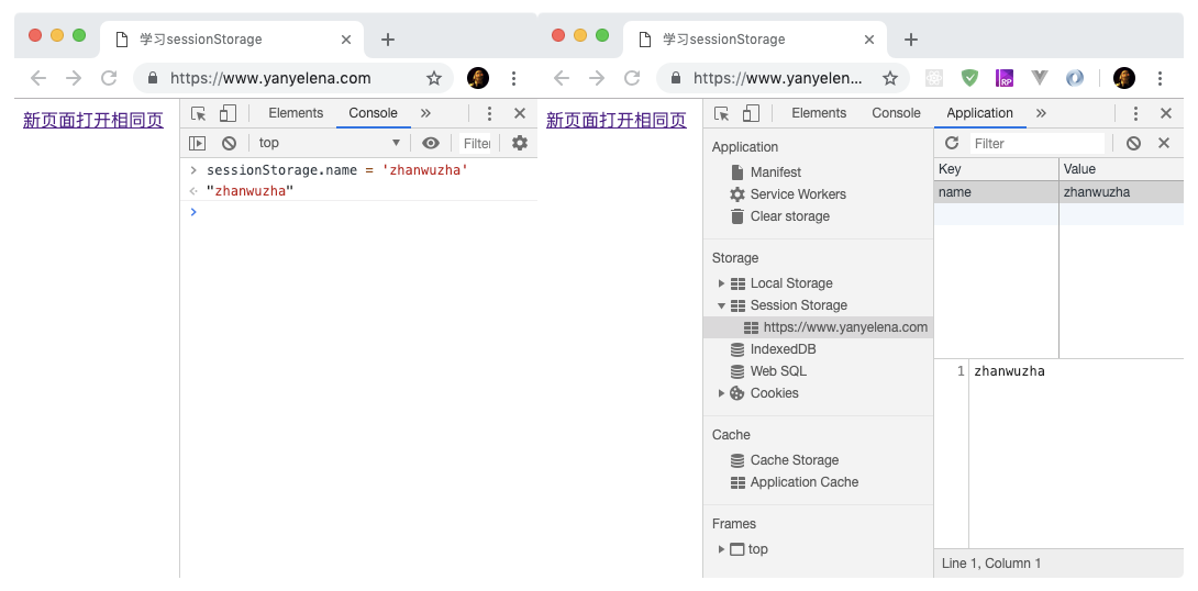sessionStorage在满足上面storage共同的方法之外,它的使用是绑定在某个会话的:
