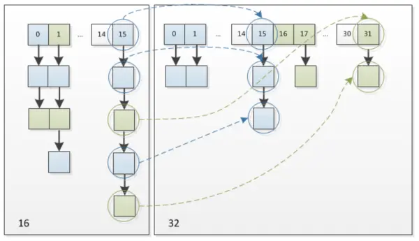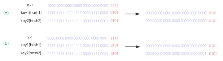在HashMap中,哈希桶数组table的长度length大小必须为2的n次方(一定是合数),这是一种非常规的设计,常规的设计是把桶的大小设计为素数。相对来说素数导致冲突的概率要小于合数,具体证明可以参考http://blog.csdn.net/liuqiyao_01/article/details/14475159,Hashtable初始化桶大小为11,就是桶大小设计为素数的应用(Hashtable扩容后不能保证还是素数)。HashMap采用这种非常规设计,主要是为了在取模和扩容时做优化,同时为了减少冲突,HashMap定位哈希桶索引位置时,也加入了高位参与运算的过程。