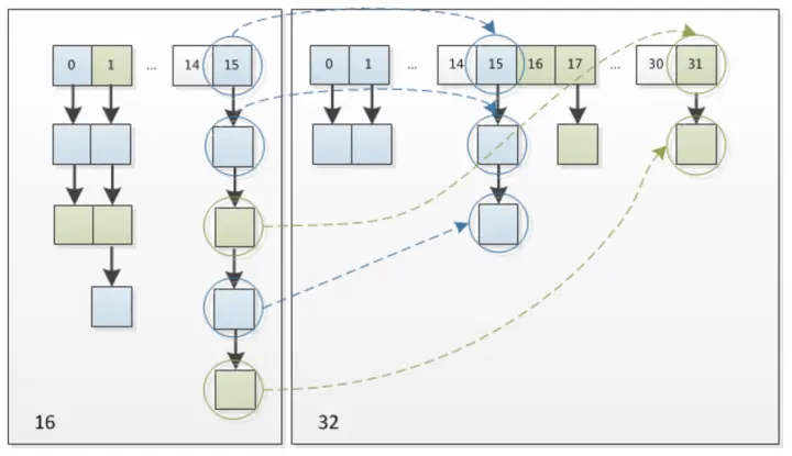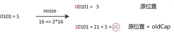 72 // 原索引+oldCap放到bucket里