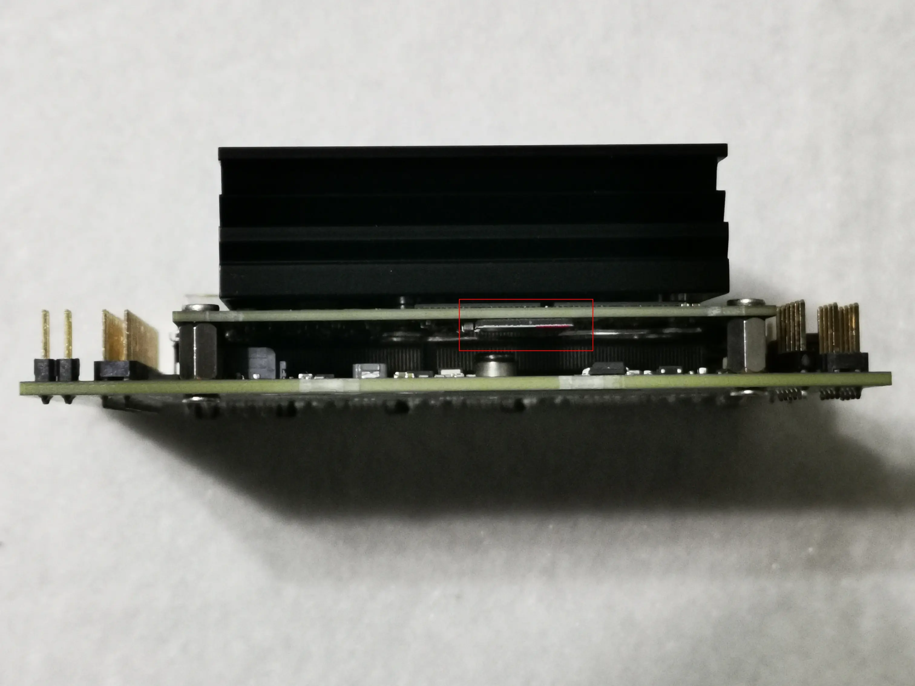 接下来需要将tf卡插入卡槽,然而我把板子上上下下看了个遍,也没有找到tf卡卡槽,联系淘宝电老板,发了张图过来,才瞧明白卡槽位置: