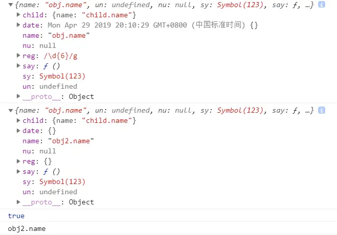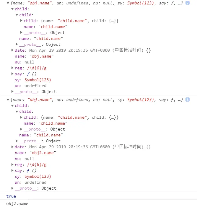 可见第二版的方法对于Date和正则的拷贝已经完全没有问题了,那么我们再处理最后一个问题:循环引用
