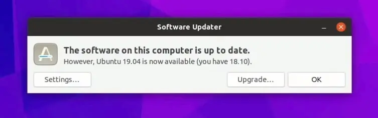 现在再次运行更新管理器时,你应该会看到 Ubuntu 19.04。