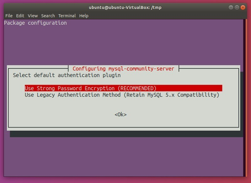 将会展示一些关于 MySQL Server 的配置信息。再次按下 Tab 去选择 “Ok” 和按下回车键: