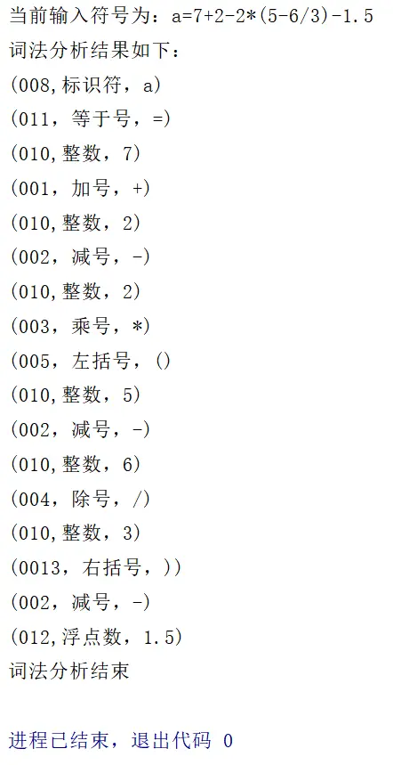 System.out.println("词法分析结束");