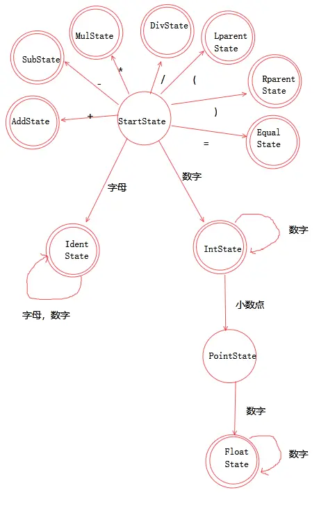 //如果当前字符仍然为字母或数字则再次进入IdentState
