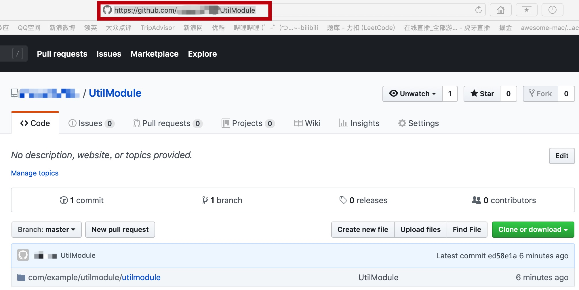 按照Github上的命令,将本地打包好的UtilModule上传到Github上: