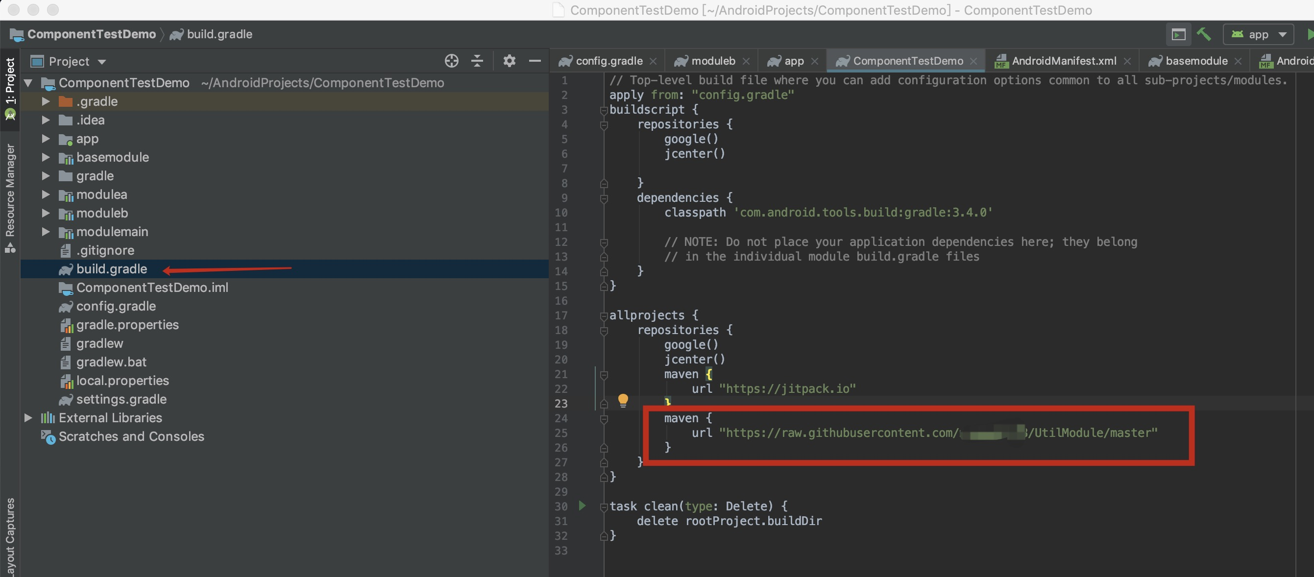 github.com部分修改为raw.githubusercontent.com再在结尾加上/master表示是主分支,添加到项目中的build.gradle中。