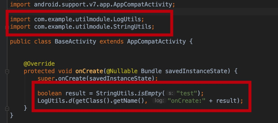 这里就是之前设置的包名:Module名:版本号。SyncNow之后删除原来项目中的工具类,然后在代码里使用远程仓库的工具类测试:
