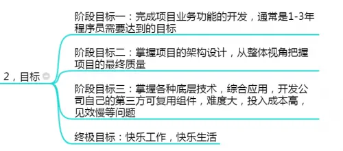 如何成为一名有竞争力的后端工程师 千锋Mr_chen 2019-04-30 577 阅读1分钟 大家好,这次我们来讲的是如何成为一名有竞争力的后端工程师,我主要从两个方向来介绍,一个构建自己的能力模型,一个达成每个阶段的目标。能力模型,这里我用思维导图的方式来给大家描述:由于篇幅问题,我把这块分两张图来说明阶段目标,目标要分短期,中期,长期,以及终极目标人生在世,不过短短的一百多年,如何在做事中寻找快乐是关键。哈哈