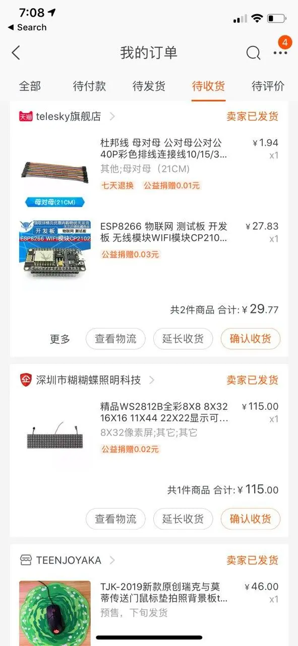 - ESP8266 WIFI 模块 CP2102 ESP-12E (淘宝 27.83 元)