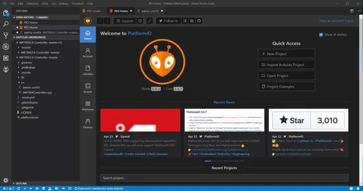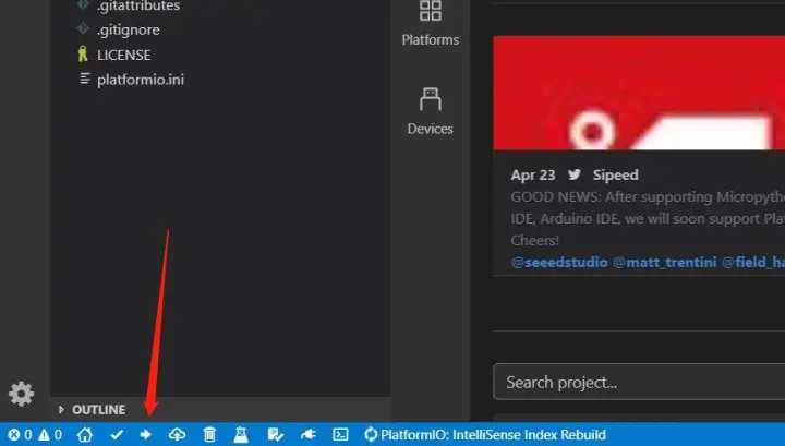 第三步,在 Visual Studio Code 里安装 Platform.IO 插件,超级无敌方便。(Linux 下会自己安装)USB 插上 ESP8266 后点 Devices 应该能看到你的设备,如果找不到,可以重启下 VS Code 或者查看插件是否安装好、USB 线等。