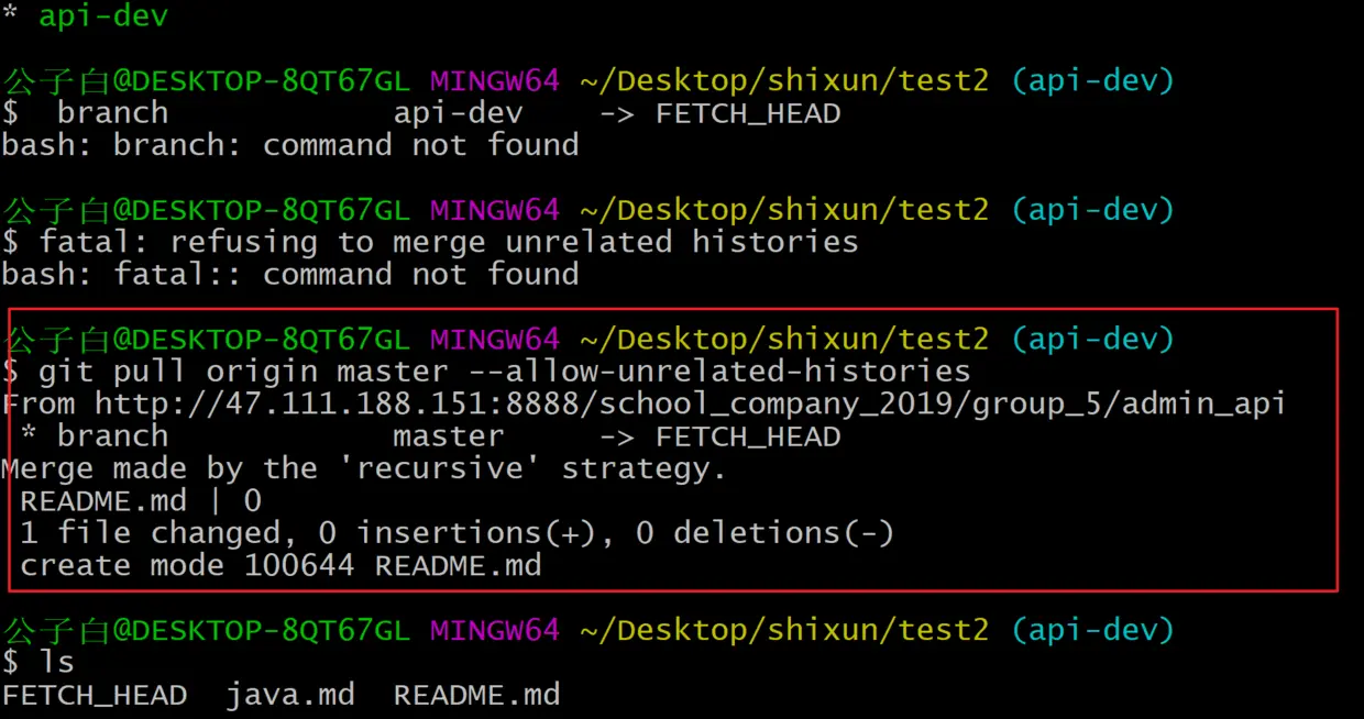 git pull时遇到 fatal: refusing to merge unrelated histories