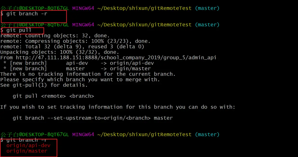 解决方案:指定当前工作目录工作分支,跟远程的仓库,分支之间的链接关系。 比如我们设置master对应远程仓库的master分支 git branch --set-upstream master origin/master