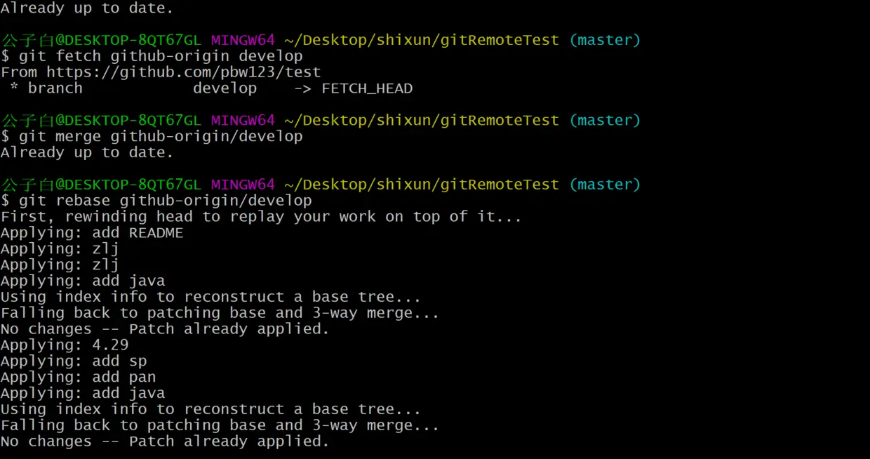 意思是把origin主机的develop分支的数据下载到本地分支branch2(没有branch2就新建)