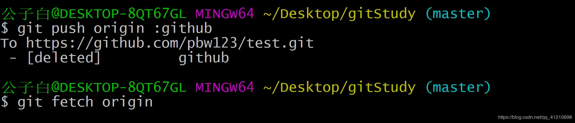 远程删除 git push <主机名> :<远程分支名>或git push <主机名> --delete <远程分支名>