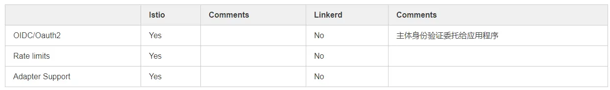 为了突出其他策略类型,Istio也可适用于rating和limiting以及提供对主体身份验证的开箱即用支持。Linkerd用户依赖集群ingress控制器提供rating和limiting。
