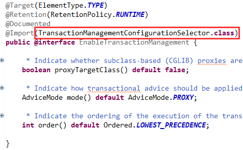 当你面对一个完全不熟悉的事物时,一定要想办法找到一个突破口,然后逐步深入。那Spring事物的突破口在哪里呢?很明显在@EnableTransactionManagement注解里,因为是它启用了事物功能。