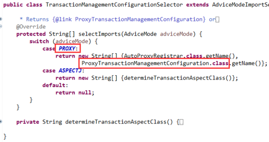 发现如果采用代理的方式时,又引入了一个类ProxyTransactionManagementConfiguration。