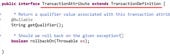 这个事务属性继承了事务定义接口,事务定义接口我们应该都很熟悉,如下图: