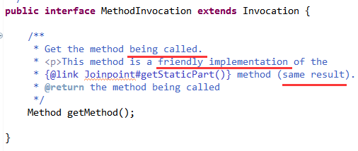可见MethodInvocation接口已经包含了一个方法调用的全量信息,