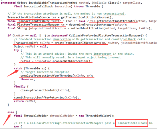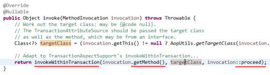 下面是事务拦截器对该方法的实现,如下图: