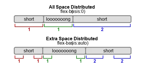 具体可以查看 【Flex布局教程】更多关于Flexbox布局如何工作的 – 用大彩图和GIF动画解释 中的 “属性 #2: Flex Grow(拉伸)”