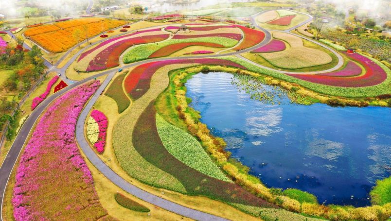 成千上万的花朵,婀娜多姿、缤纷旖旎。似锦的繁花丛中,红色酢浆草花扬脸微笑,黄色菖蒲亭亭玉立,雪白橘子花悄然绽放……散发出阵阵清香,游人漫步其间犹如进入仙境。