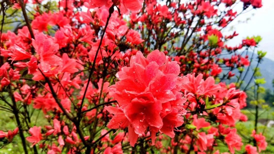 每年四月中下旬,建德乾潭胥岭水石岗的杜鹃花总是“卖力”绽放,漫山遍野都是它的身影。