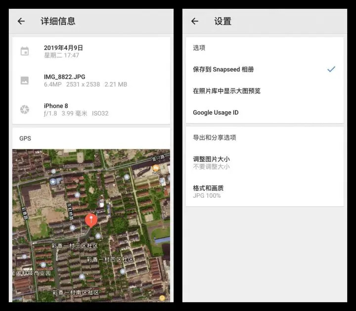 在设置里,可以对导出画质进行调整,建议设置为不要调整大小以及 JPG 100% 画质。