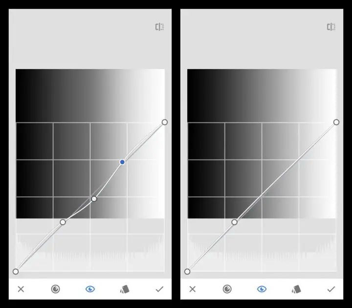 在 Snapseed 里,我们点击曲线上任意一处,可以添加点,如果你想去掉其中某个点,将其拖到曲线的坐标图外即可。