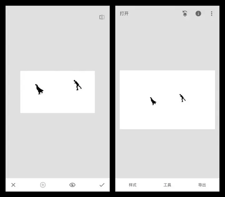 我们首先演示的是同一张照片叠加,新增照片后,混合模式保持默认,双手捏合缩放照片来调整大小和位置,然后调整不透明度。