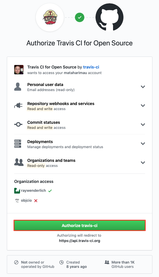 因为您已经登录GitHub,所以甚至不需要输入您的GitHub用户名 - Travis就知道了!