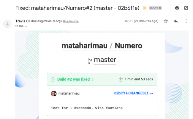 这一次,构建成功了! 但是你知道会发生这种情况。 这是您邮箱中的好消息: