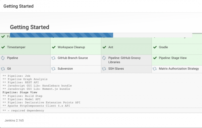 选择Install suggested plugins,然后去散步 - 这需要几分钟。