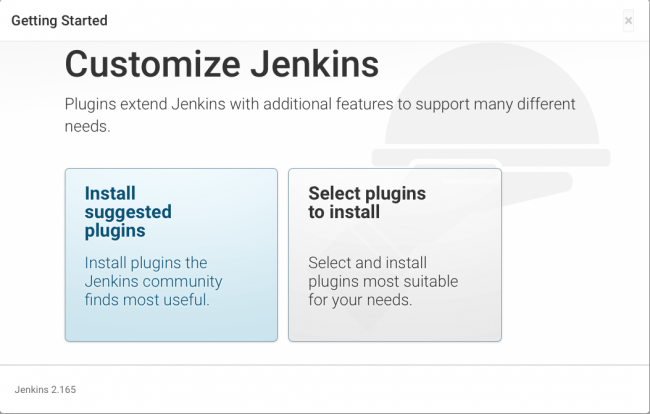 复制密码并将其粘贴到管理员密码(Administrator password)输入框中。 单击Continue以加载Customize Jenkins页面: