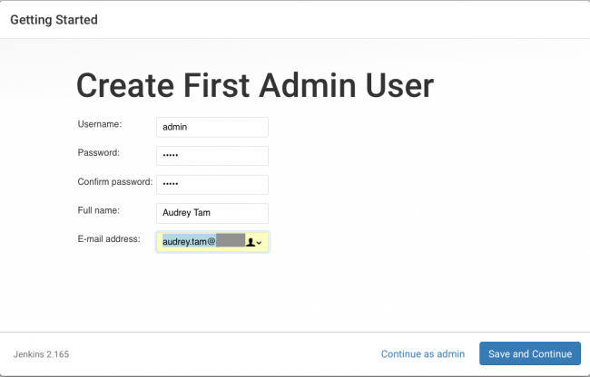 安装Java 1.8后,运行Jenkins安装程序,该安装程序现在应该已经完成下载。 安装程序完成后,应该在浏览器中打开localhost:8080 - 它需要一个密码:
