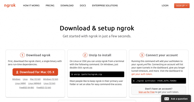 ngrok可以帮助你! 这是一个免费的应用程序,它使用安全隧道将localhost暴露给互联网。GitHub’s webhooks tutorial使用它,所以一定是OK。 继续download ngrok for Mac OS X: